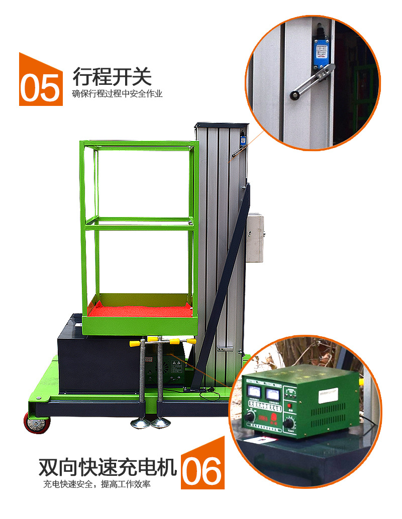 3.铝合金升降机工时有异常声响、应立即停机检查以免造成升降严重破坏使