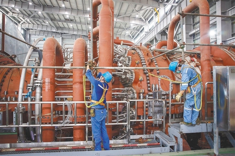 近日,在文昌燃气电厂2号机组安装现场,工作人员正在抓紧安装调试。海南日报记者 宋国强 摄