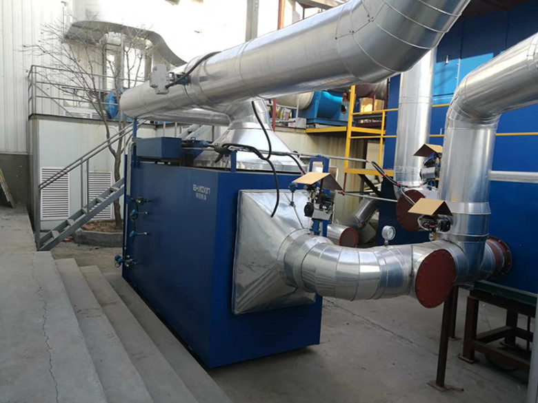 RCO催化燃烧设备主要分为预处理单元、吸附浓缩单元、催化氧化单元、通风单元与电控单元。有机废气先经过预处理单元,除去废气中的细小粉尘,一来可以防止粉尘堵塞吸附床,二来可以避免粉尘导致催化剂。有机废气经过预处理后经过吸附浓缩单元,经过吸附床的吸附后,一部分被净化的废气通过15米长的烟囱达标排放,喷涂行业废气治理方案,吸附床经过一段时间的使用后吸附能力会下降,需要进行脱附处理,脱附下来的有机废气再经过催化燃烧后,氧化分解成CO2和H2O,从而实现有机废气的达标排放。
