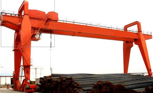 它的金属结构像门形框架,承载主梁下安装两条支脚,可以直接在地面的轨道上行走,主梁两端可以具有外伸悬臂梁。